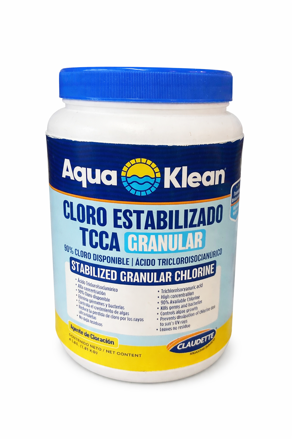 Cloro estabilizado granular con 90% de cloro disponible, elaborado a base de ácido tricloroisocianúrico (TCCA). Su alta concentración garantiza una desinfección efectiva del agua, eliminando bacterias, gérmenes y controlando el crecimiento de algas. Su fórmula estabilizada ayuda a prevenir la degradación del cloro causada por los rayos UV del sol, prolongando su acción y manteniendo el agua limpia, clara y segura. No deja residuos.